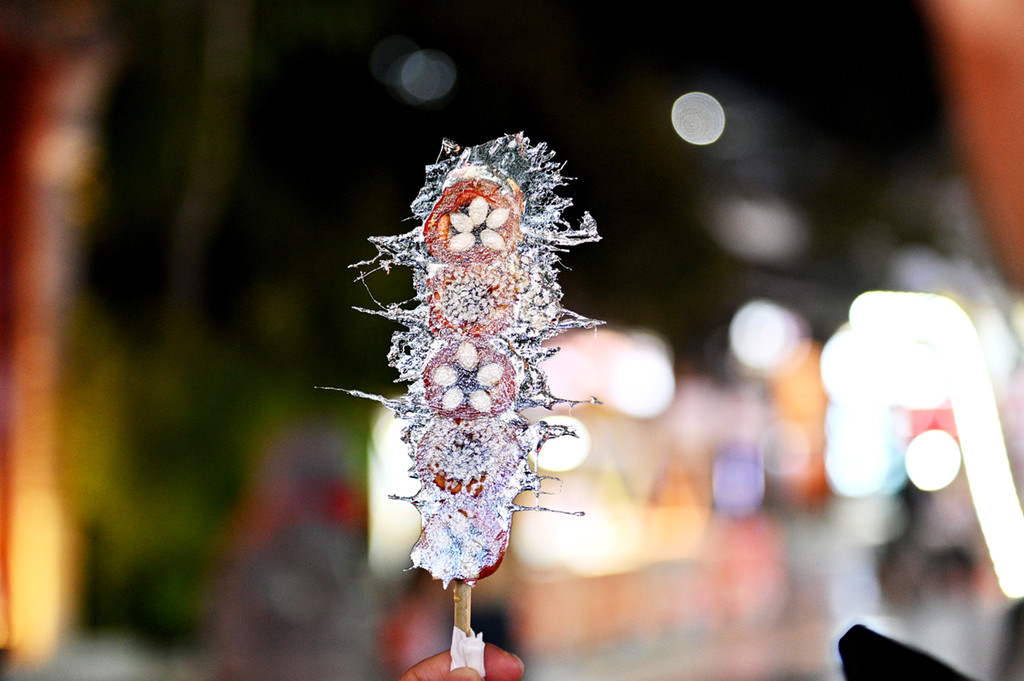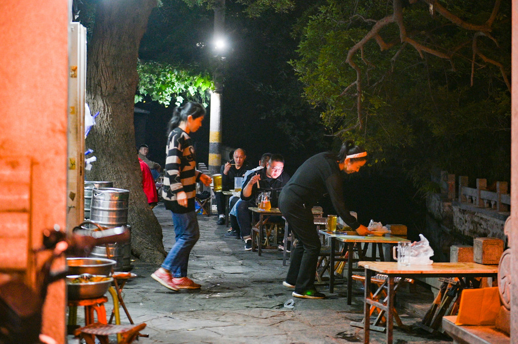 看尽尼山圣境的繁华离场时,已经是晚上8点多,一行人向济宁出发,去核桃园小吃街吃宵夜。抵达时济宁下着雨,雨点不大,但也让原本人潮涌动的小吃街变得安静了许多,街道上有些摊点店铺已关门,好在,剩下的也足够好吃。