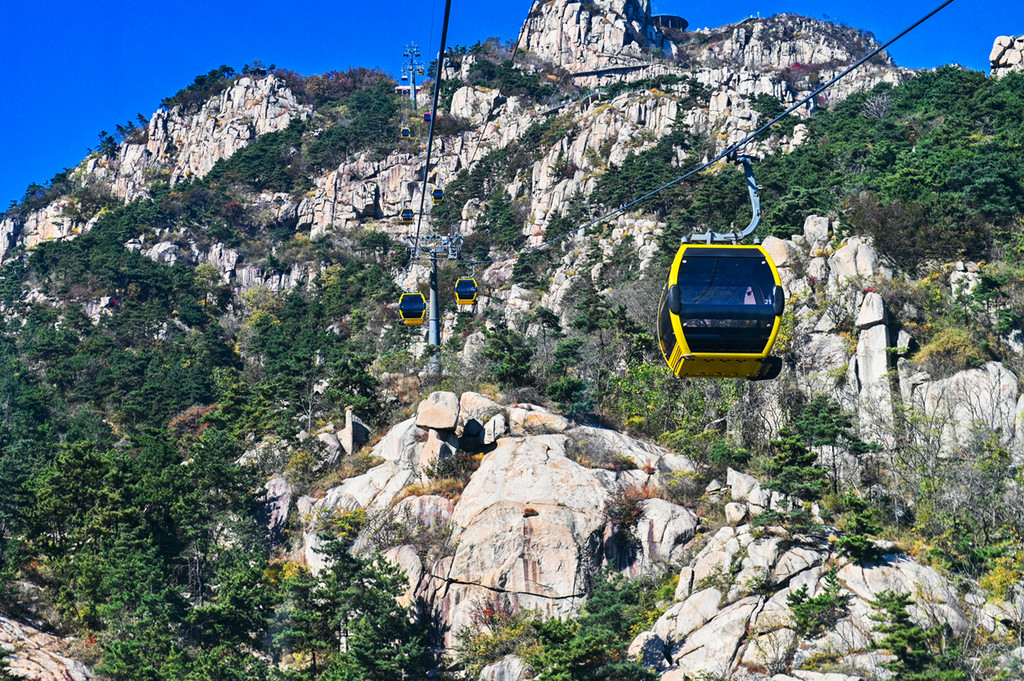我们从东门进入景区,然后乘观光车到索道站,再乘索道直接送到山顶,一路畅通又舒适。在索道的行进过程中,身边全是盎然的连绵群山,满眼都是大自然的鬼斧神工。