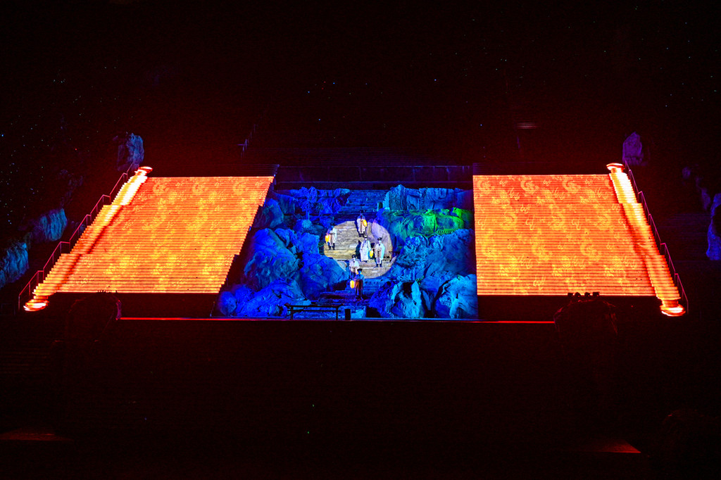 “孔子之谓集大成。集大成者,金声而玉振之也。金场也者,始条理也;玉振之也者,终条理也”,【金声玉振】是孟子对孔子的评价,也是尼山圣境招牌演出的名字。它用音乐、舞蹈、戏剧等多种艺术形式再现了中国古代传统的“六艺”礼乐文化,整场演出分为三篇九章,从传统文化中提炼中华精神,好看且有意义。