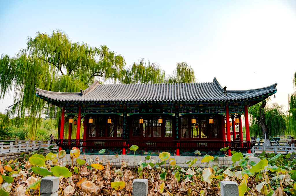 四面荷花三面柳,一城山色半城湖,是乾隆时太子少保刘凤诰赏大明湖风光时发出的赞叹。大明湖赏荷最佳时间是每年的7月到9月初,待到金秋,静谧的湖中,残荷静静矗立,从容的向曾经的辉煌SAY再见。