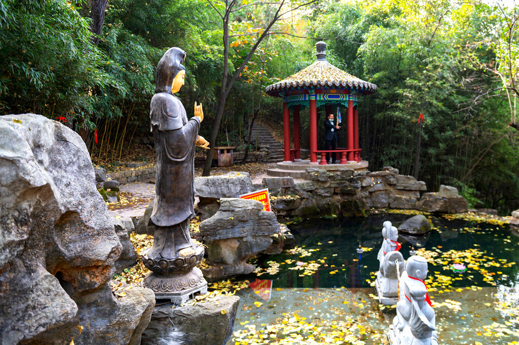 里面还有天趣苑、兴教寺、圣水泉等等景点。圣水泉的泉水源自海拔575米的自然洞穴,涌出的泉水跌落自水池,又经小水道,以小瀑布的形式注入水池,传说喝了能长寿。