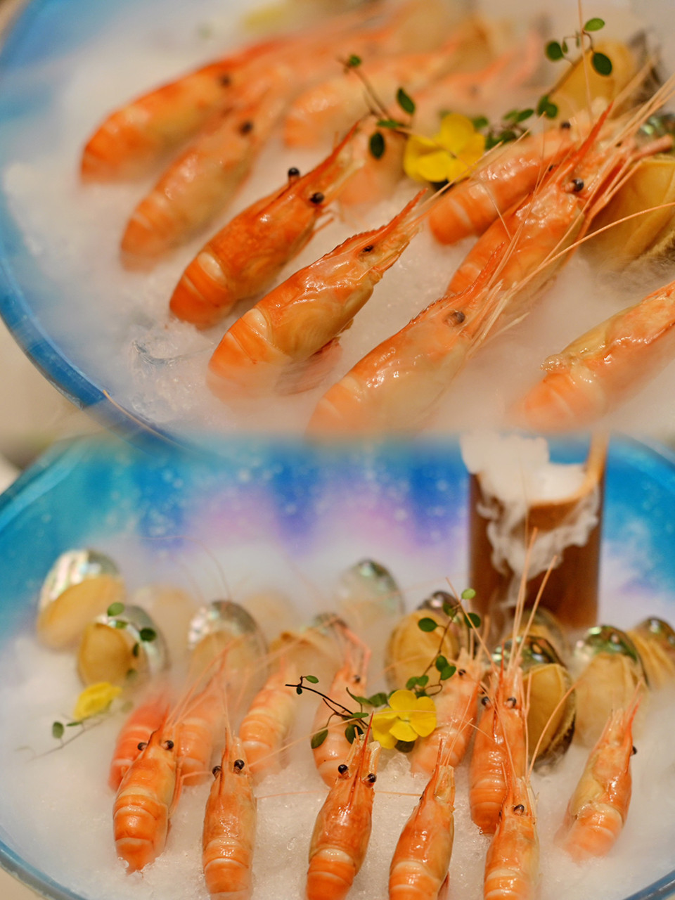 醉花阴应该算是意境菜的范畴了。鲍鱼+罗氏虾的组合,个头都不错,食材新鲜,吃的就是个原滋原味,但摆盘真心赢过一大票。