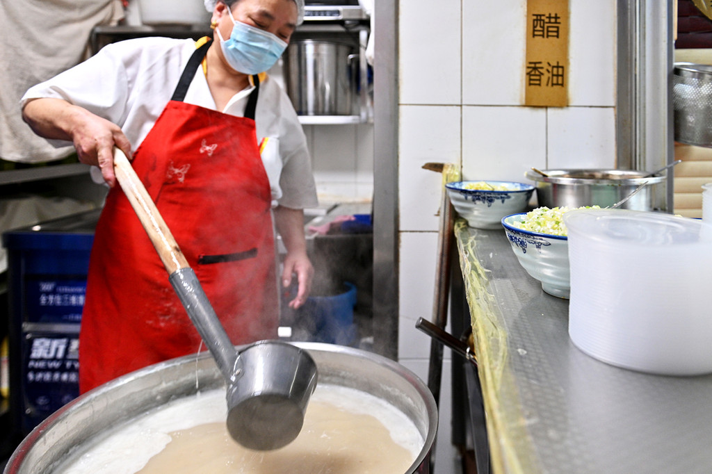 它家糁浓稠顺滑,打入蛋花,加点醋,很有点一发入魂的惊艳。