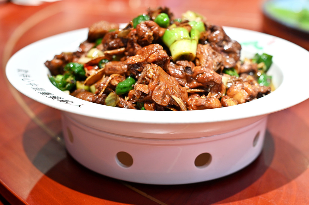 泰山炒鸡,用的据说是当地出产的泰山走地鸡,鸡肉很入味,炒得也很嫩,汤汁浓郁,收汁也不错,用它拌饭就是一个绝绝子。