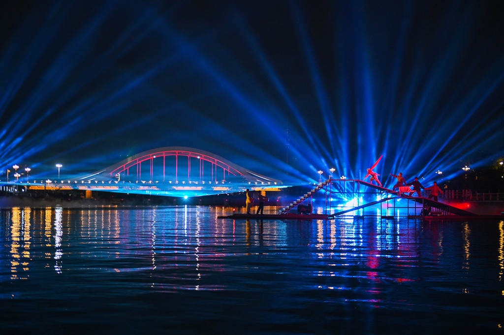 整场演出以激光水幕,歌舞表演,科技特效等表现形式,把临沂的故事传说串联在一起。从琅琊名士,凤城之始,东夷文化,魏晋遗风,沂蒙精神到红色血脉的延续,整场演出大约50分钟,每一分钟都很精彩。