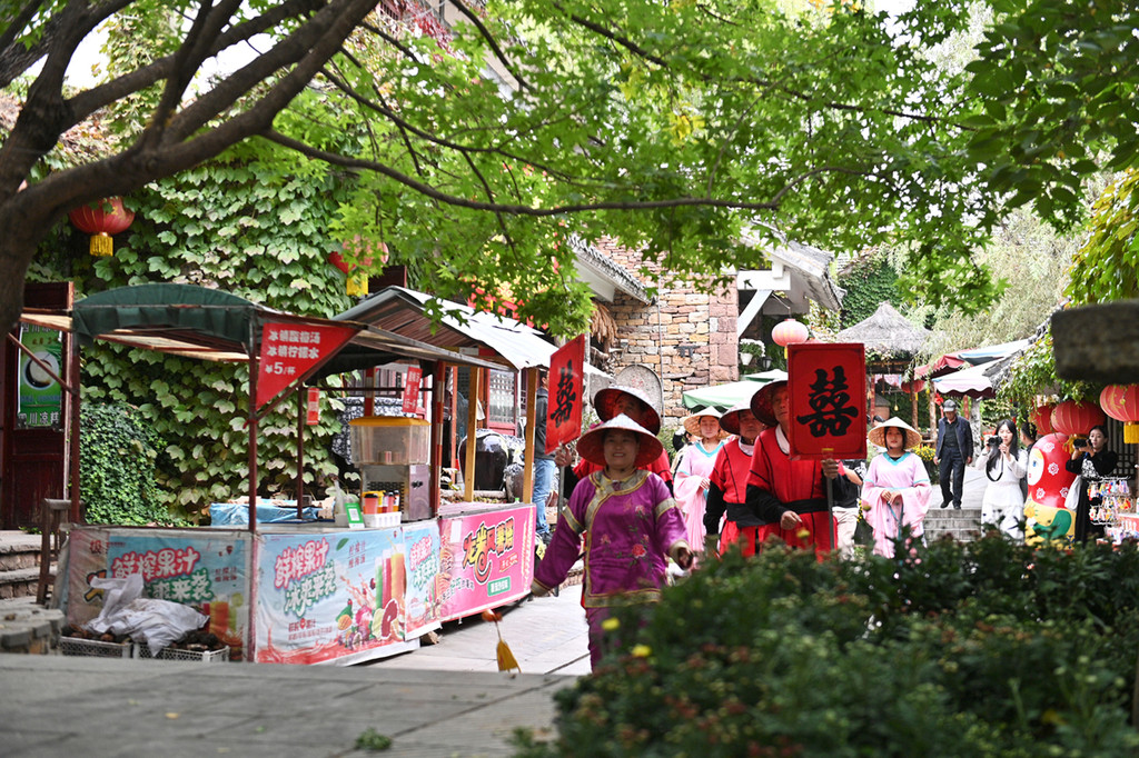 里面还可以参观竹编等各种不同的手工作坊,可以观看沂蒙民俗婚嫁表演,看晒秋,体验各种美食等等。
