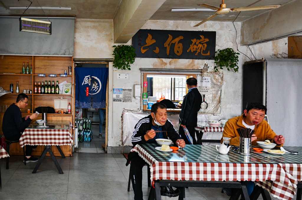 这天上午的行程,除了赶路,就是吃吃吃!早餐去吃羊糁汤,依然是看着极不起眼的苍蝇馆子。店内的牌匾上写着三个大字“六佰碗”,也不知道是不是每天卖六百碗的意思。