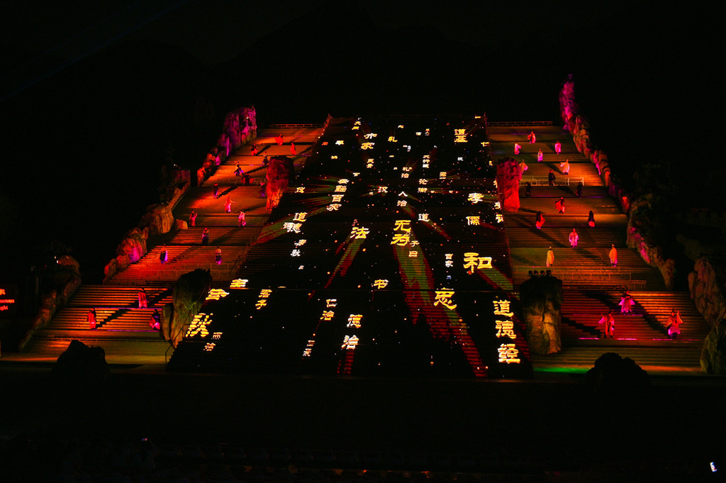 整个演出规模宠大,气势磅礴,时长约80分钟,隆重,大气,富丽又堂皇。需要嘱咐的是,这场演出是露天观看,夜晚山间寒气重,记得观赏前多加件衣服。