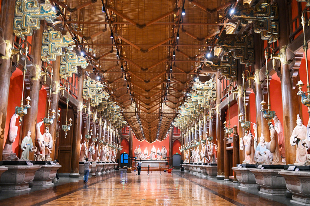 进入大学堂,不时就能听到周边“哇噻”的赞叹,里面大气磅礴,确实是那种相机都拍不出的震撼,每个角落都美得让人惊叹。大学堂不同时段还设置有各种不同的演出,我们到的晚,只赶上了《鼓瑟吹笙》表演,好在,还有金声玉振。