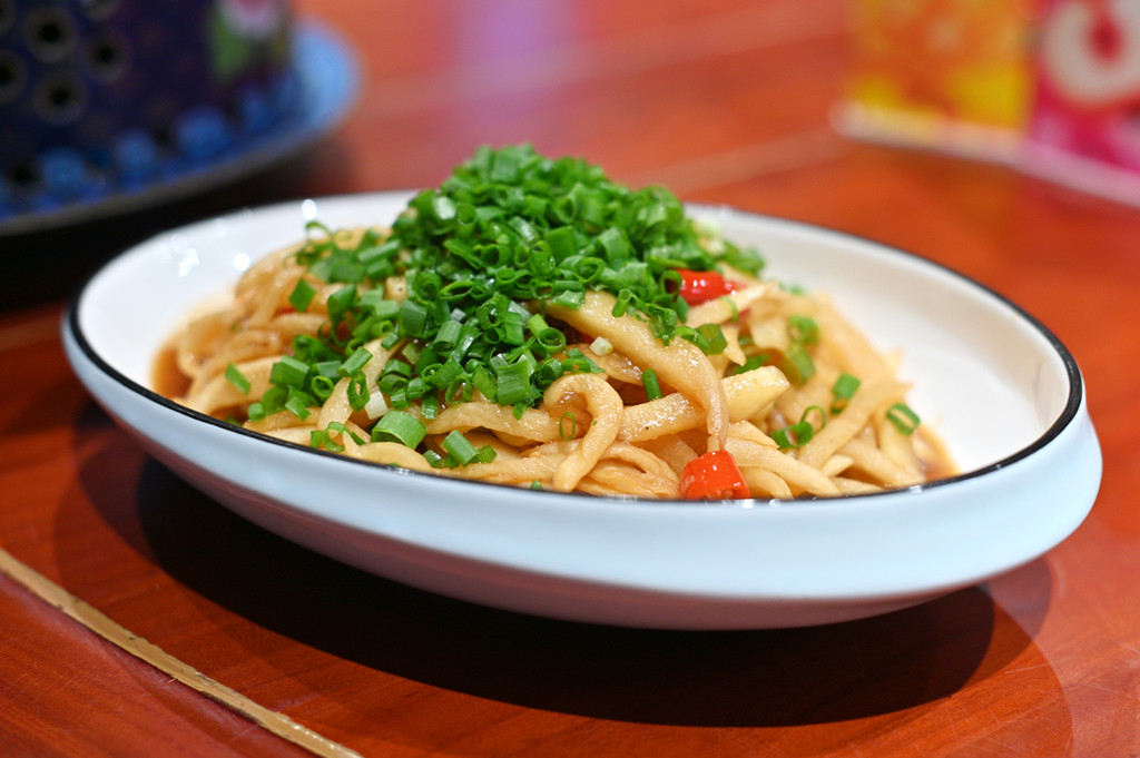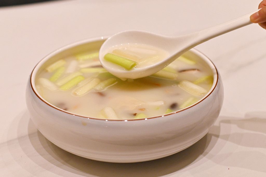 很多年前看《舌尖上的中国》就垂涎的奶汤蒲菜,这次终于如愿吃到。奶白的汤水中飘荡着蒲菜的清香,汤汁浓郁,口感丰富,不经意间,甚至有种置身于泉边,感受泉水涌动的错觉。