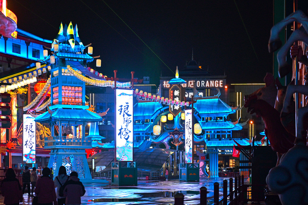 临沂古称琅琊,有着千年的历史文化。逛新琅琊不夜景区,傍晚抵达是毕竟好的,可以看得到白天景象,也能看到夜晚的繁华。临沂的新潮时沿与古风古韵在这里碰撞出奇妙的火花。街道上还有各种免费的国潮艺术表演,据说都很精彩。