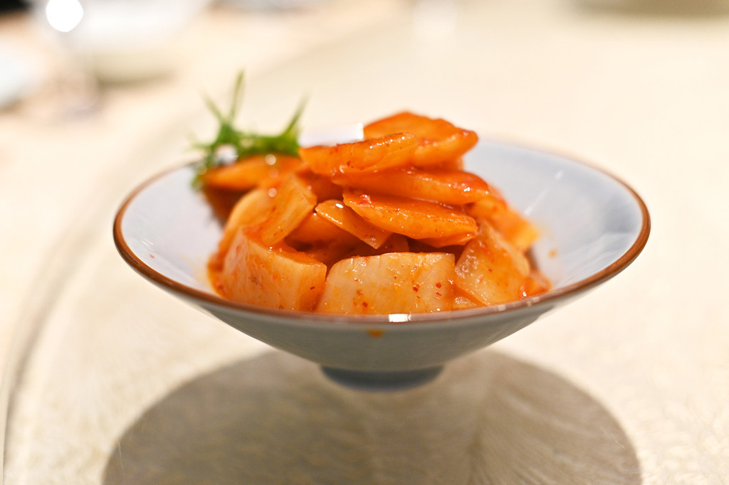 还有道极不起眼的萝卜丝要单独拿出来说说。萝卜应该是腌过水的萝卜皮,口感生脆,里面还混合了些粉条,萝卜皮的脆和粉条的韧组合在一起实在是妙,调味也很好,清口,解腻,下饭,这一盘,我一个人怕是吃了一小半。