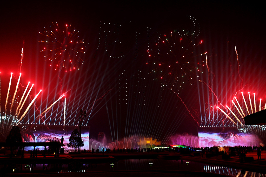 晚上尼山圣境的压轴大秀一定不要错过,光影水幕烟花秀,无人机,喷泉,烟花,灯光秀,多种元素组合的超级亮点,美轮美奂,看得意犹未尽。