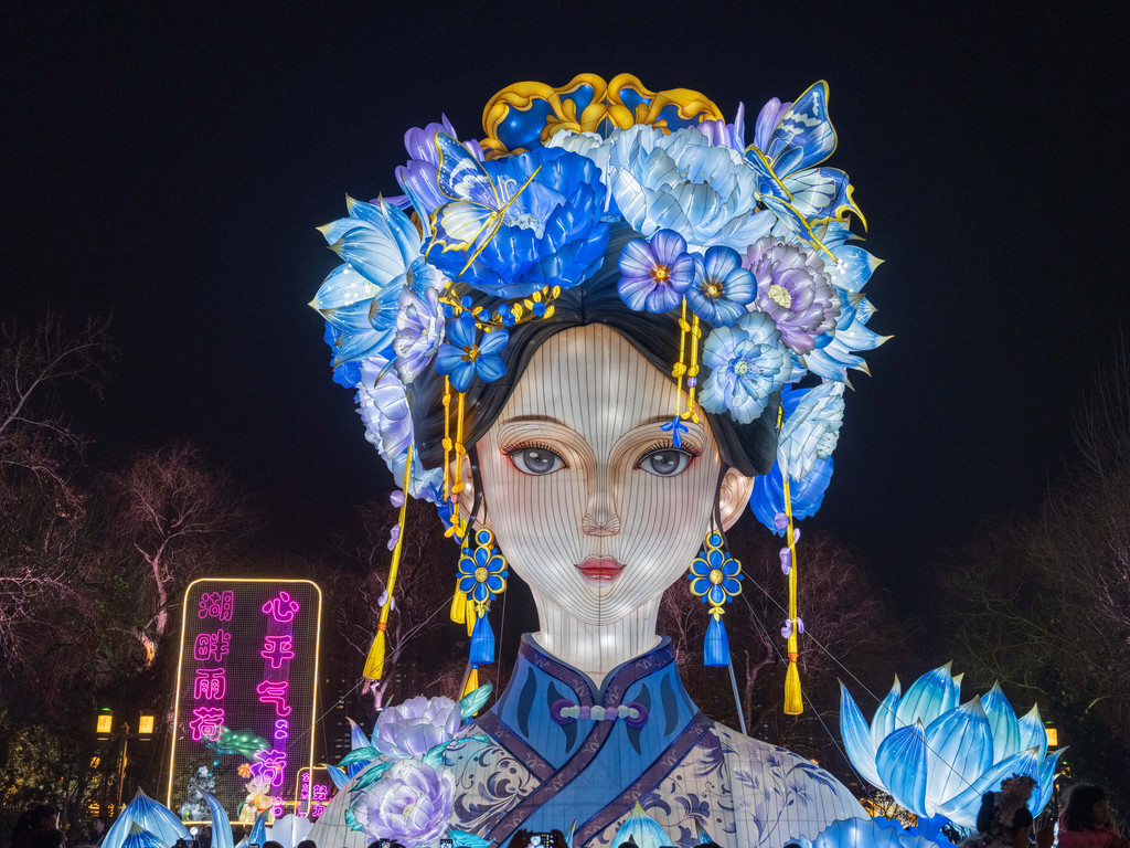 京西书局门口的花灯,旁边还有驼铃古道主题的骆驼模型以及应景的蛇模型。