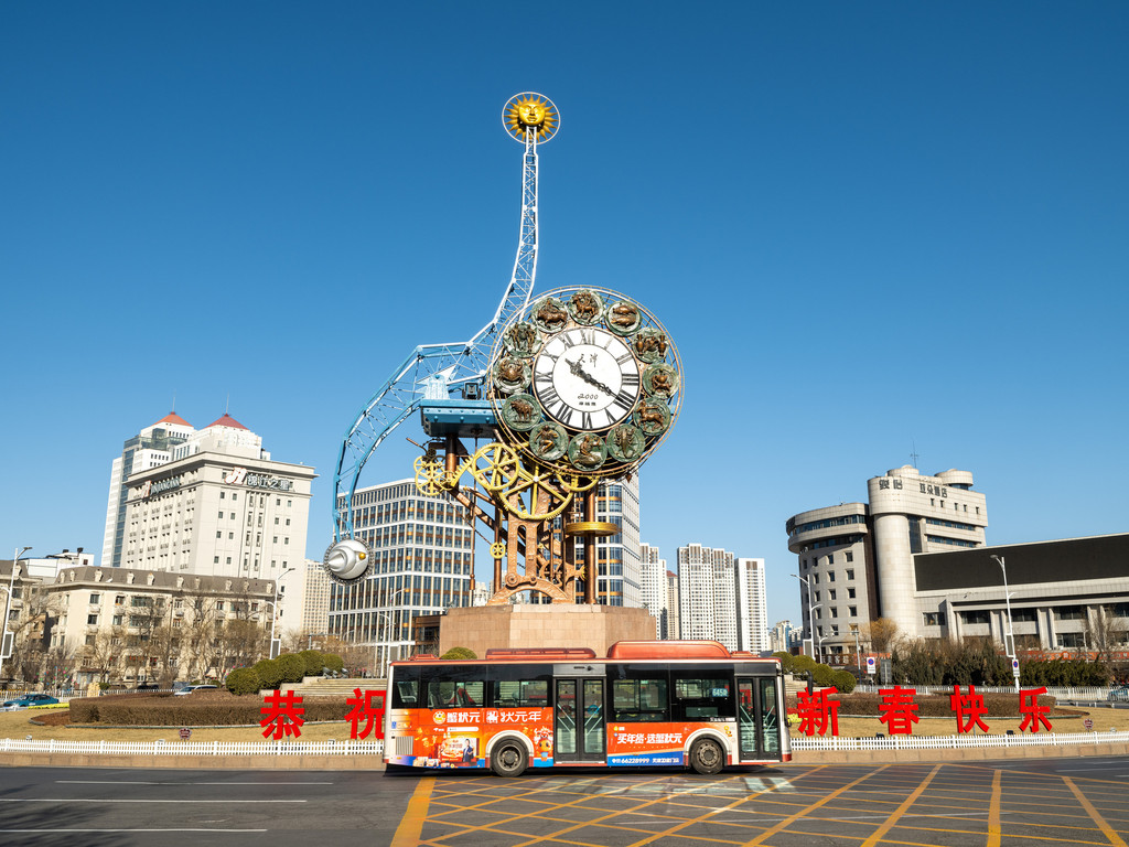 拍摄世纪钟的时候,正好公交车路过,恭祝一车人新春快乐:)
