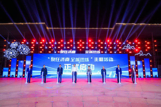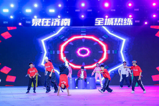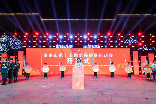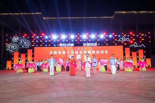 4月25日晚,“泉在济南 全城热练”2025年济南市第十五届全民健身运动会在高新区国际会展中心广场精彩启幕。