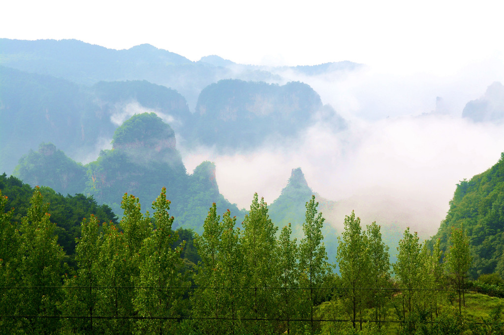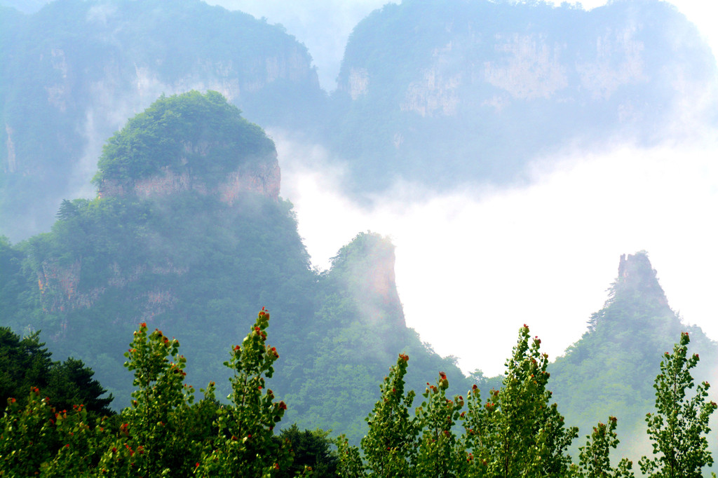 这里险峰幻叠,云海浩翰,瞬息万变被之为"云山幻影"。山之东崖,俗称天柱关,由高低错落的56个山峰组成。王莽岭是南太行第二高峰,一直有"中原后花园、清凉胜境"之美誉。登上王莽岭,俯视中原、能使人真正领略"自古太行天上脊"的风采。