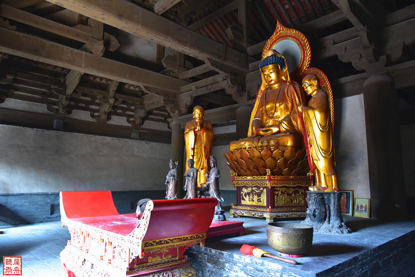 下寺现存正殿3间,南殿3间,正殿中供奉有弥勒佛等6尊彩塑,有典型的唐代风格。南殿现存彩塑12尊,佛坛上正面的5尊塑像是宋代作品。殿中还有一通唐代碑刻《硖石寺大隋远法师遗迹图》,价值连城。这里的艺术品也正在维修保护之中,若想一睹真容,还需假以时日,游客要耐心等待。