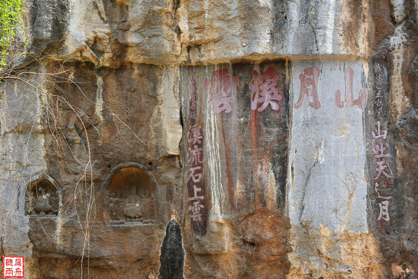 回程,走出山门,千万不要错过别有洞天的“乳窦”。在鬼斧神工砍削而成的悬崖之下,顺崖壁淋漓而下的山泉,在崖下形成一池经年不涸的泉水,名曰“乳窦泉”。这一池清水清澈晶莹,水位常年如一,涝不增,早不减,不取不增,多取不减。至今,仍是寺里的饮用水源。摩崖之上的石壁,佛龛之旁,虽经山水多年冲刷,依然清晰可见早年刻下的“瀑布飞泉”,“山吐天边月,溪流石上云”的字样,据史家考证,这些字迹大多为是北魏时期的遗存。