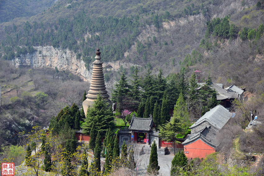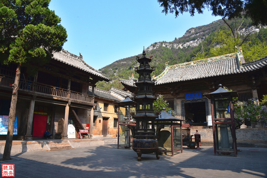 自上寺下行去往下寺的路上,回头仰望,上寺端坐于山腰之间,尤显巍峨壮观。