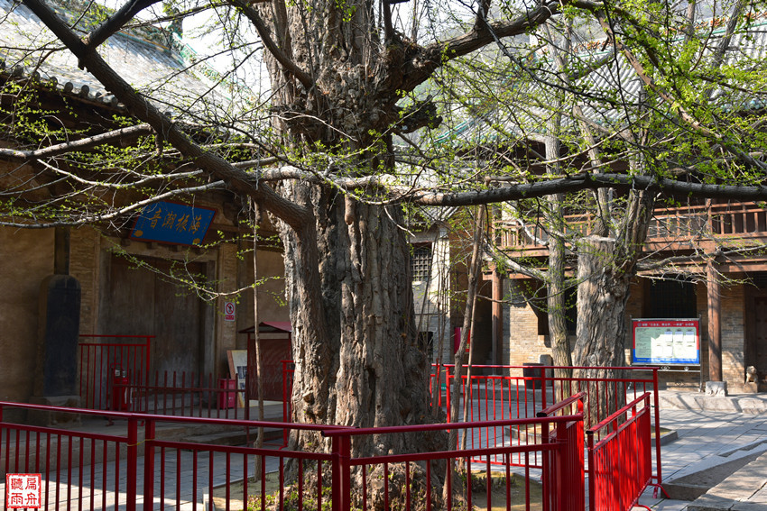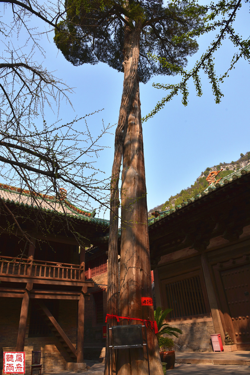 寺院中有两组古树,非常值得欣赏。一组为两株银杏,一雌一雄,相守相爱已经1400多年。每年夏秋两季,一对情侣枝叶繁茂,握手相拥,雌树每每收获白果百余斤。另一组则为母子相依为命的参天古柏,母柏围粗3米,高27米;子柏围粗1米,高24米。相传,一百多年前,母柏枯死,寺院决定次日将其砍伐,另植新树。不想,当天夜里,一株幼柏破土而出,攀着母柏的躯干缠绕而上,紧紧将母树抱住。翌日,住持见之,以为神意,乃令供奉起来,严加保护。