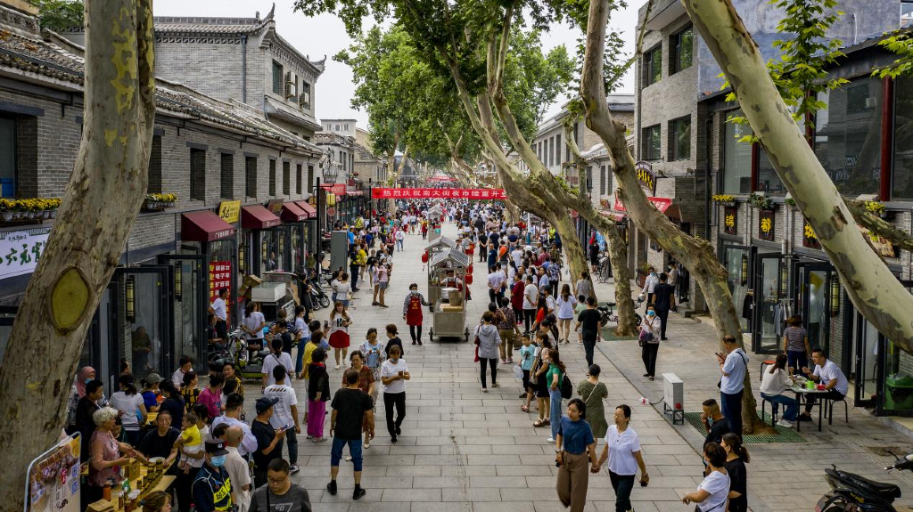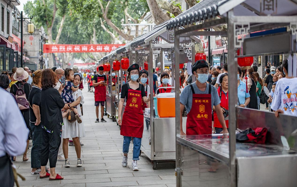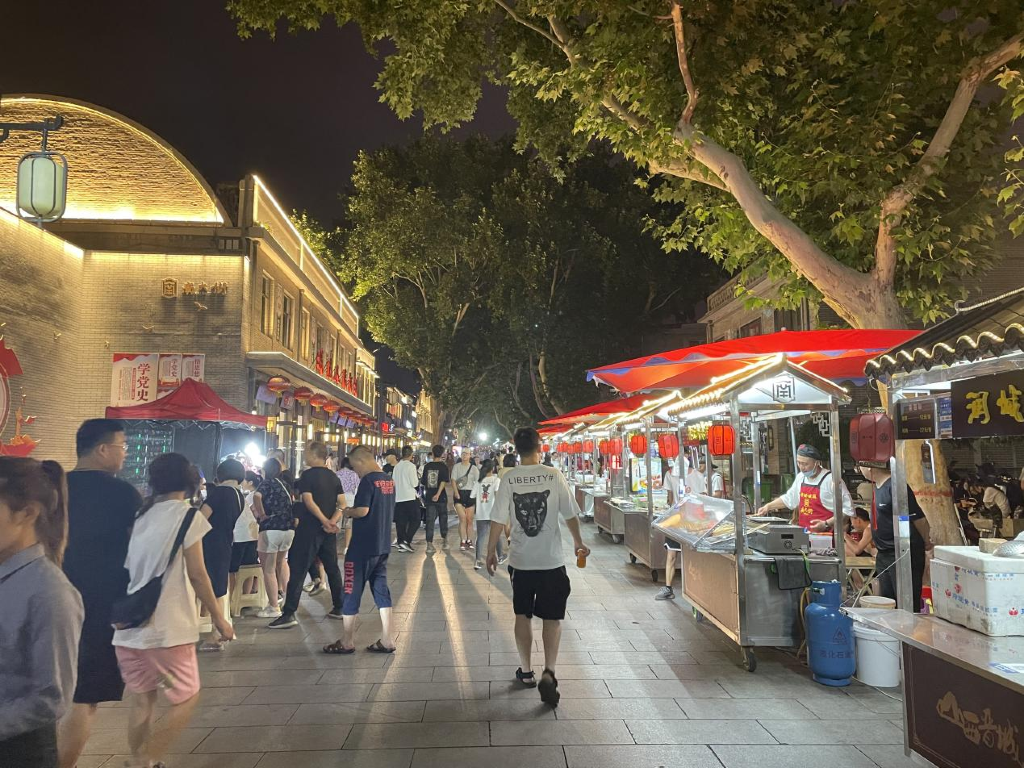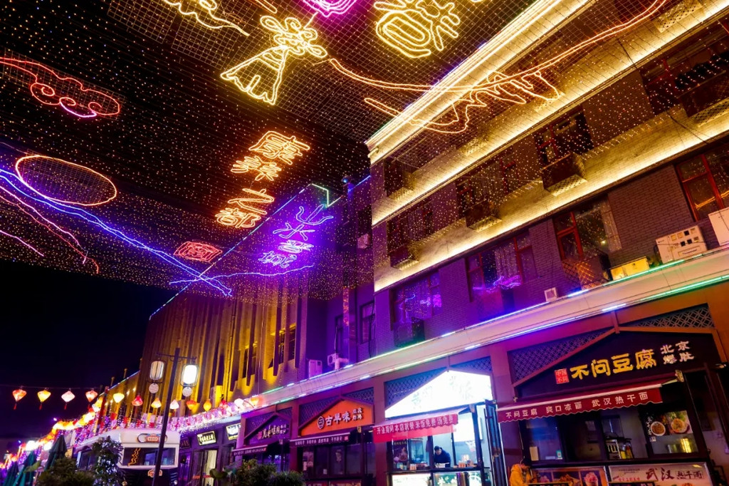 如果说白天的南大街看起来古香古色,仿似以静谧的姿态诉说着百年的沉淀,那么夜晚的南大街则是流光溢彩人山人海,以另一番景象彰显往昔的繁华。