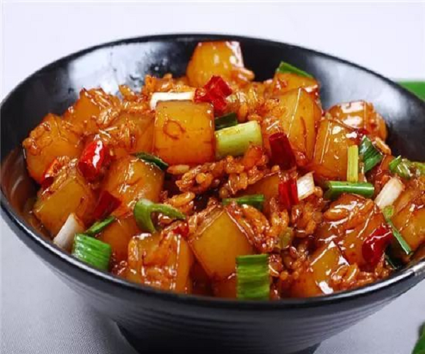 它是晋城的特色传统风味小吃,至今已有100多年的历史,刚出锅的炒凉粉看起来晶莹剔透如水晶一般,吃起来口感软嫩,味道清爽,喜欢吃辣的再在里面加上一勺辣椒酱,香辣可口,口水都要流了呢!