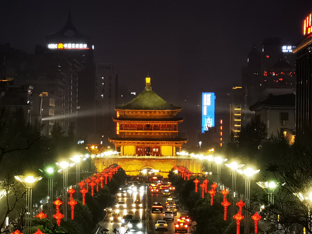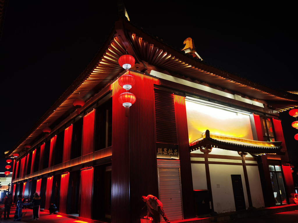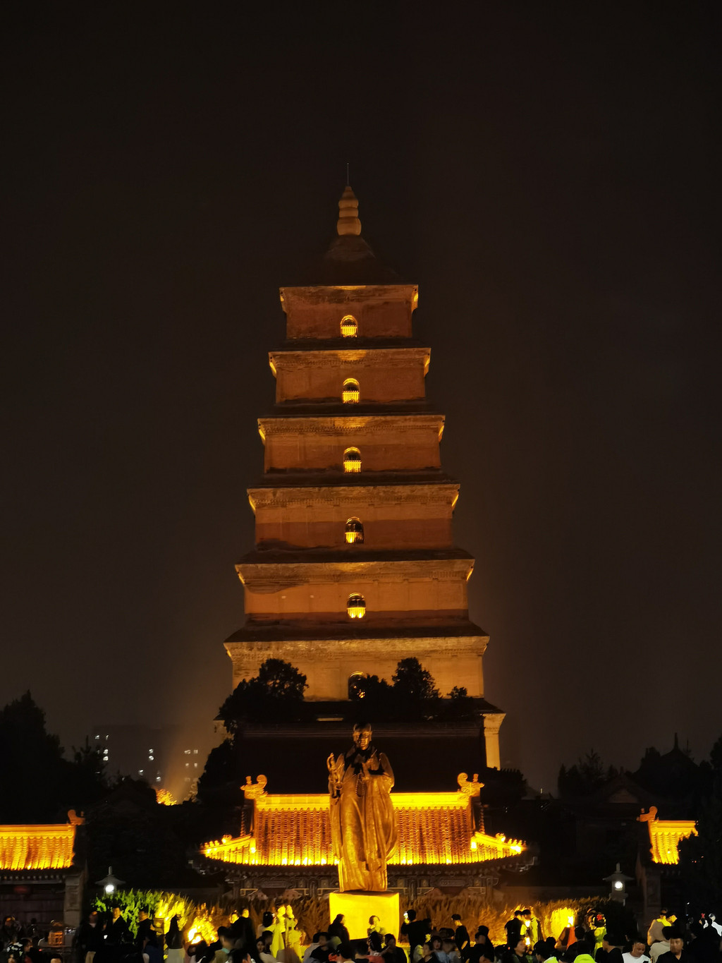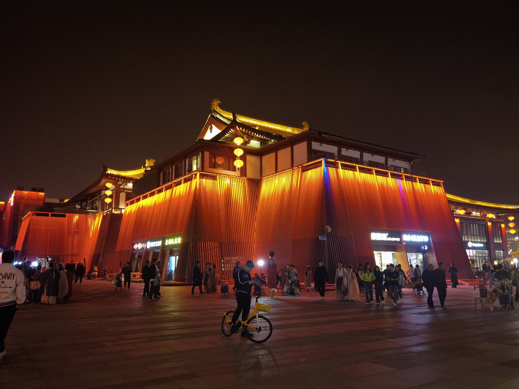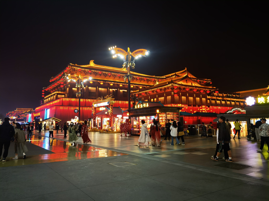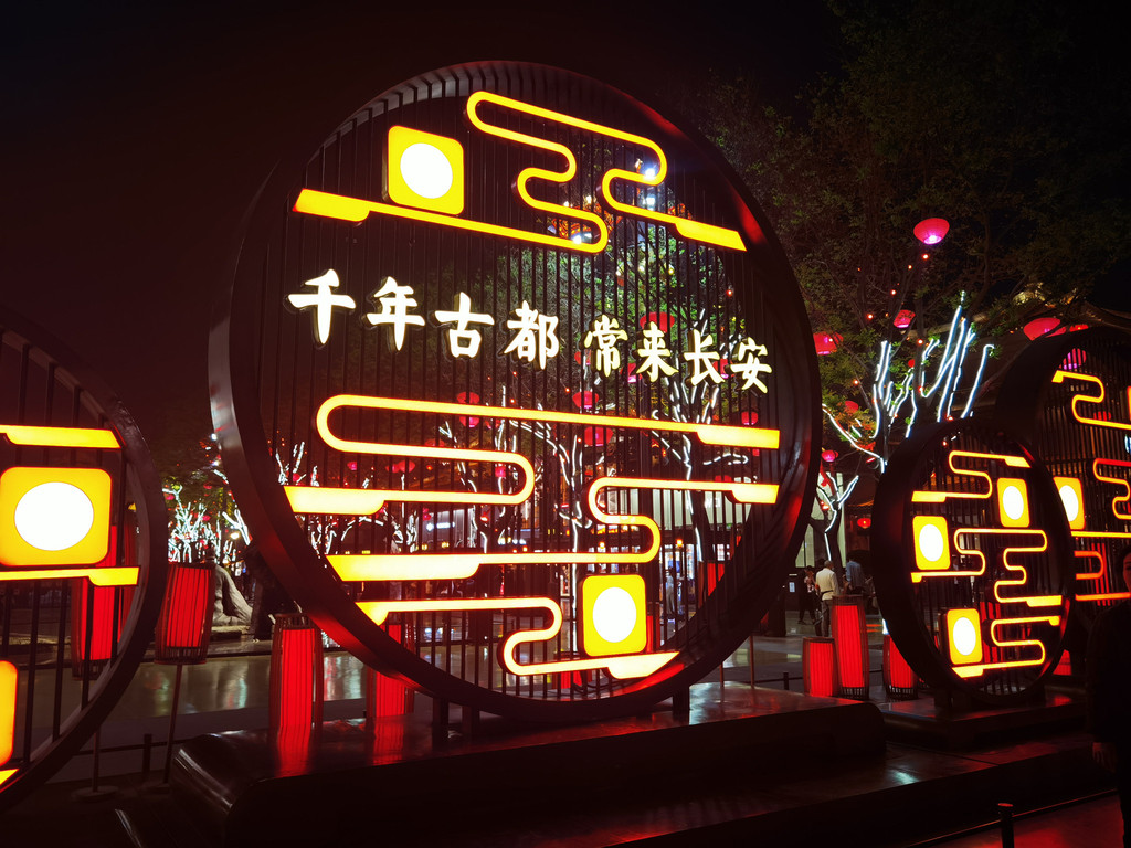 办完酒店入住手续,稍作休息后,步行前往全国唯一一个以盛唐文化为背景,以唐风元素为主线的大型仿唐建筑群步行街,西安地标性景区“大唐不夜城步行街”。