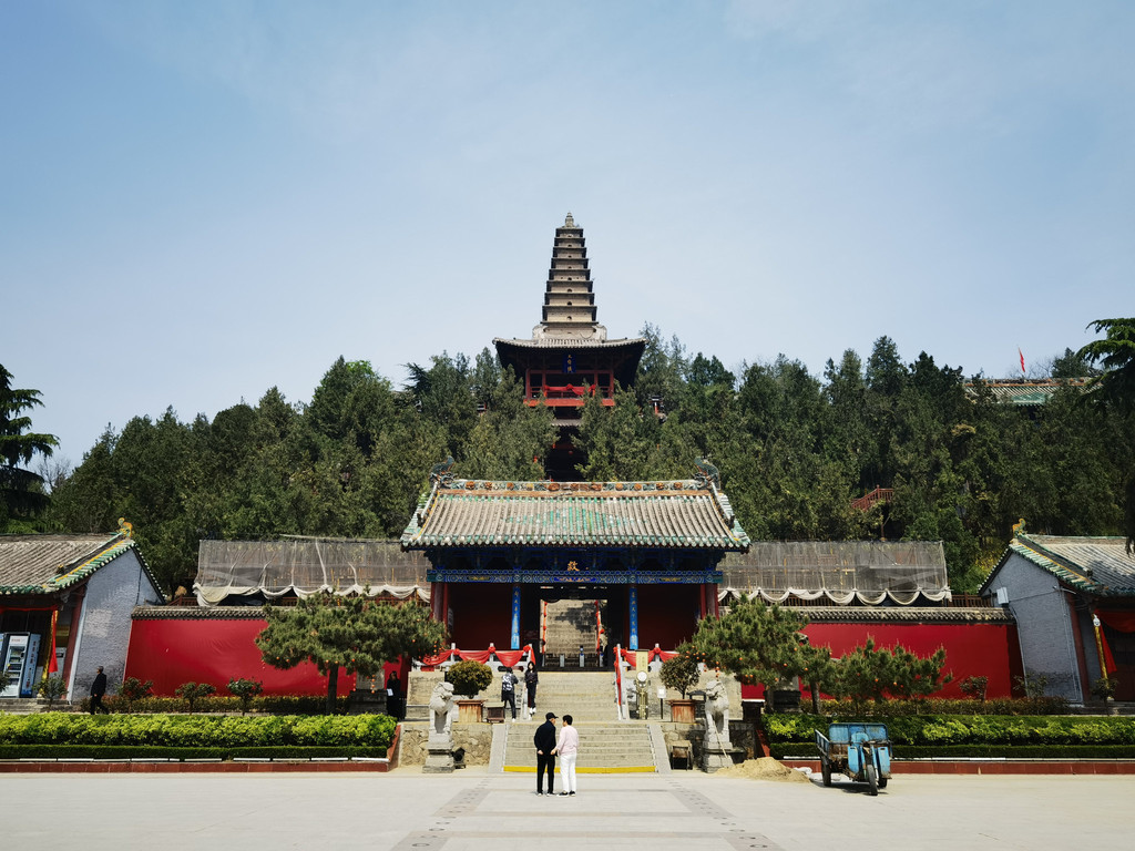 11:45从鹳雀楼出发,万鹳线行驶5.8KM,用时13分钟,到达中国历史名剧《西厢记》故事的发生地“普救寺”,寺内方形砖塔,原名舍利塔,俗称莺莺塔同北京天坛的回音壁、河南宝轮寺塔、重庆潼南区大佛寺内的“石琴”并称为中国现存的四大回音建筑,和缅甸掸邦的摇头塔、匈牙利索尔诺克的音乐塔、摩洛哥马拉克斯的香塔、法国巴黎的钟塔、意大利的比萨斜塔,并称为世界六大奇塔。