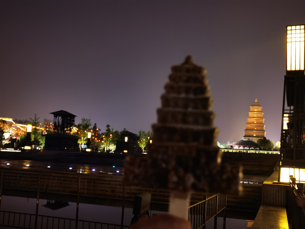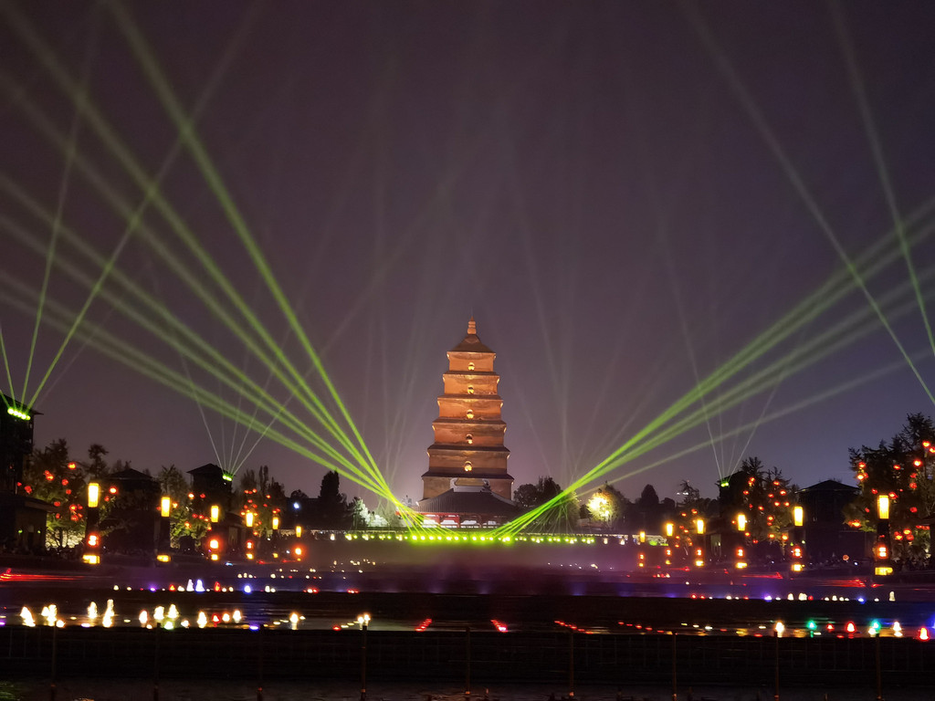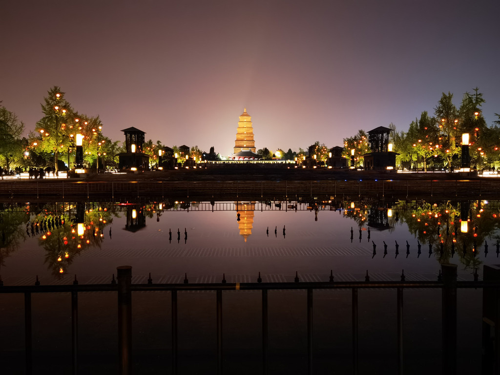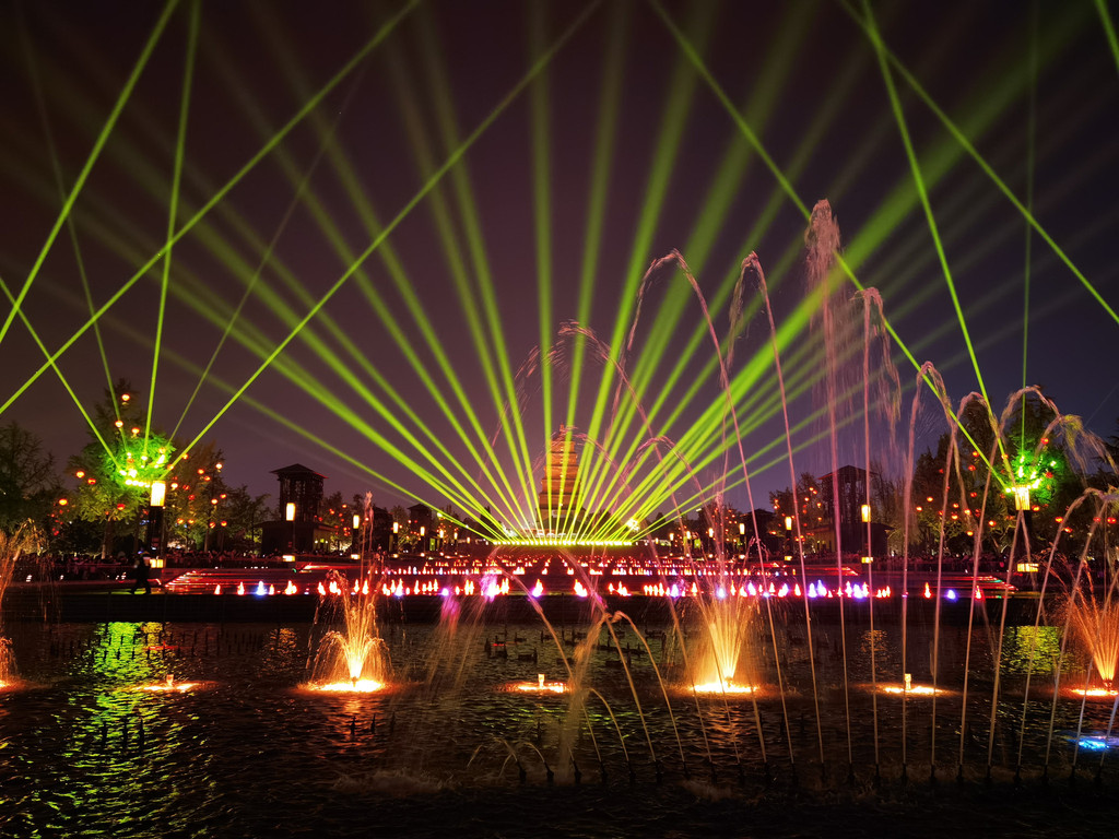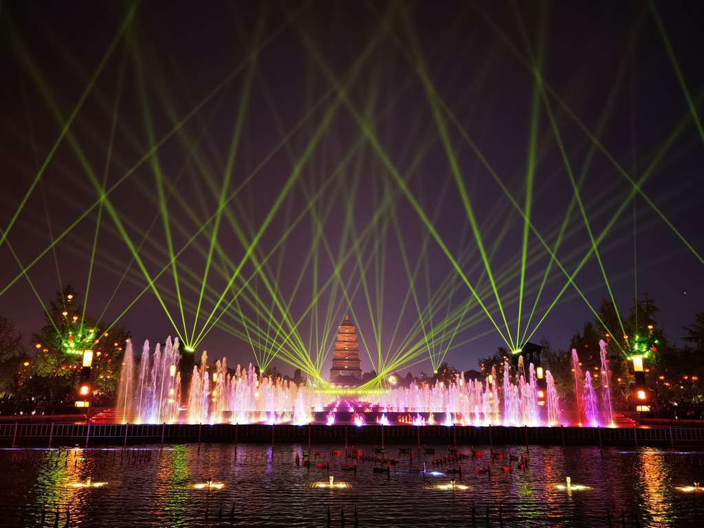 晚间,在“大雁塔文化休闲景区”观赏灯光五彩斑斓的夜景,观看大型音乐喷泉。