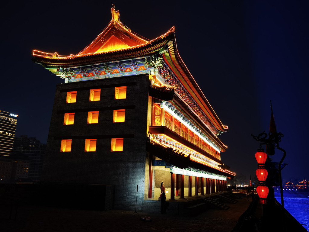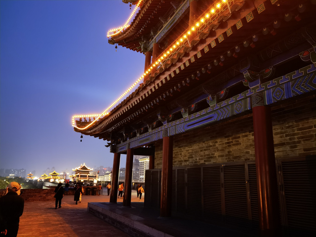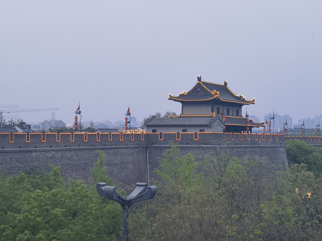 夜色临近,登西安城墙永宁门城楼,打卡西安钟楼。