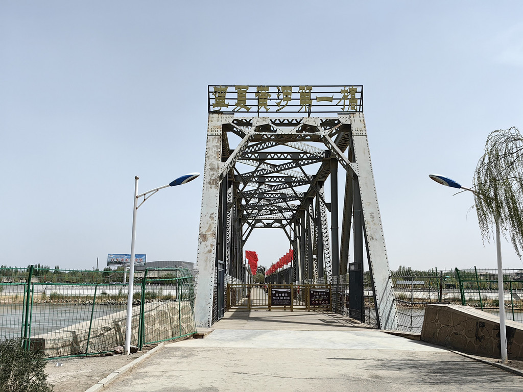 青铜峡黄河铁桥位于青铜峡黄河大峡谷景区入口处,是宁夏第一座黄河桥梁,1959年7月1日正式竣工通车,主要是为青铜峡水利枢纽工程及黄河两岸运输物资而建。该桥为半永久性桥梁,桥长292.3米,整个铁桥安装使用了35000个铆钉。铁桥多处生锈钢梁上镀有英国、法国等八国文字及生产年份标记,素称“八国桥”。