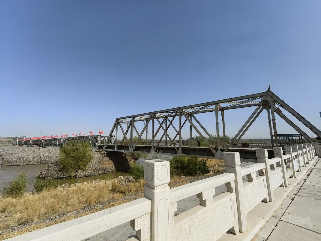 游览完一百零八塔,乘观光车来到青铜峡黄河铁桥。