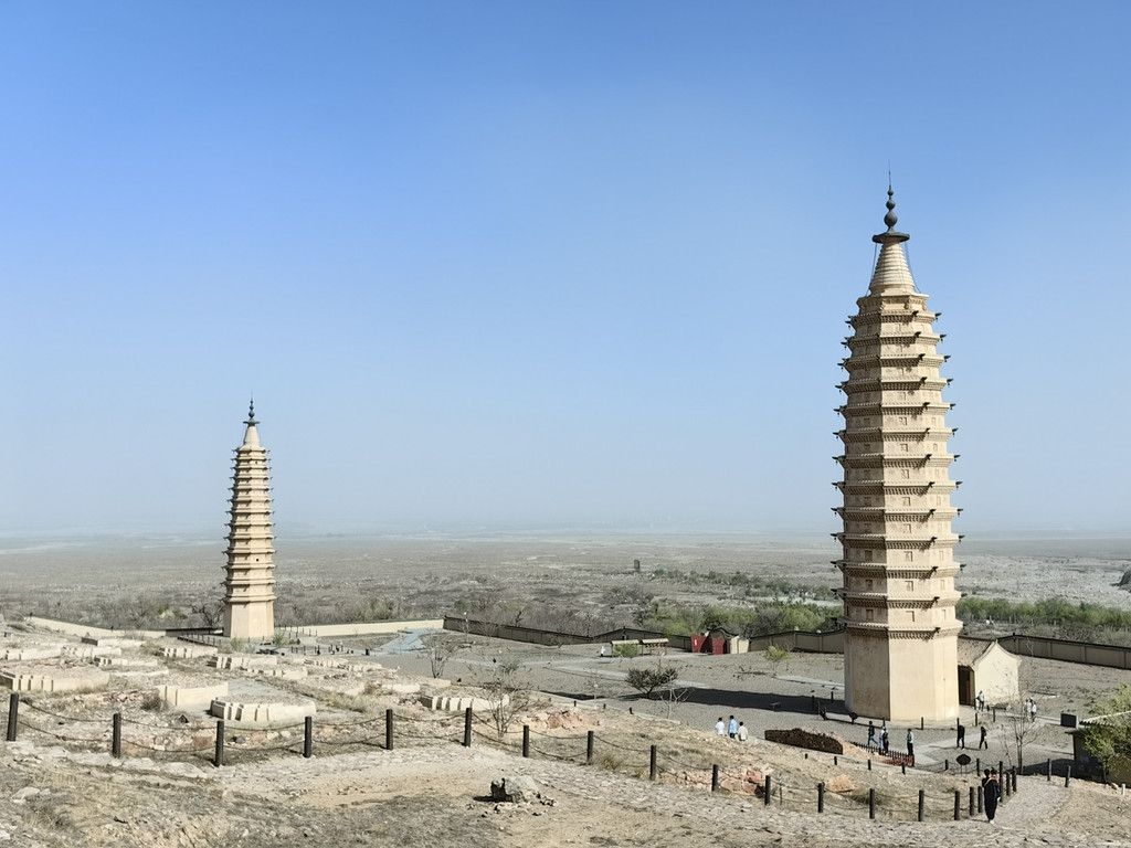 东西双塔造型简约,古朴大方。看完拜寺口双塔已经下午4点多了,我们驱车110公里,经京藏高速到达吴忠市。