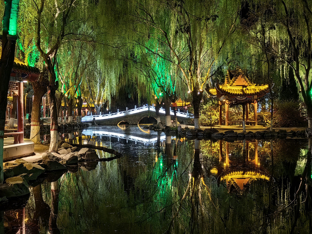 从中卫高庙出来天色渐晚,我们吃过晚饭,在附近的公园闲逛,感受中卫这座小城的夜生活。