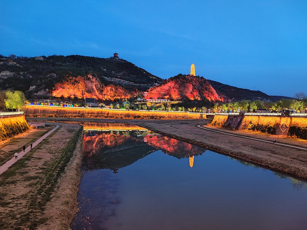 夜市上人很多,不仅有游客,还有很多当地人来这里大快朵颐。品尝了延安的特色美食后,我们沿延河一边散步,一边欣赏美丽的夜景。