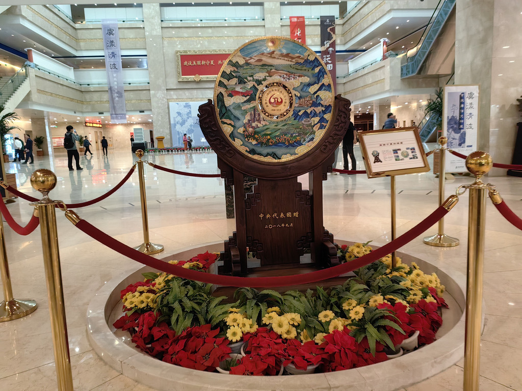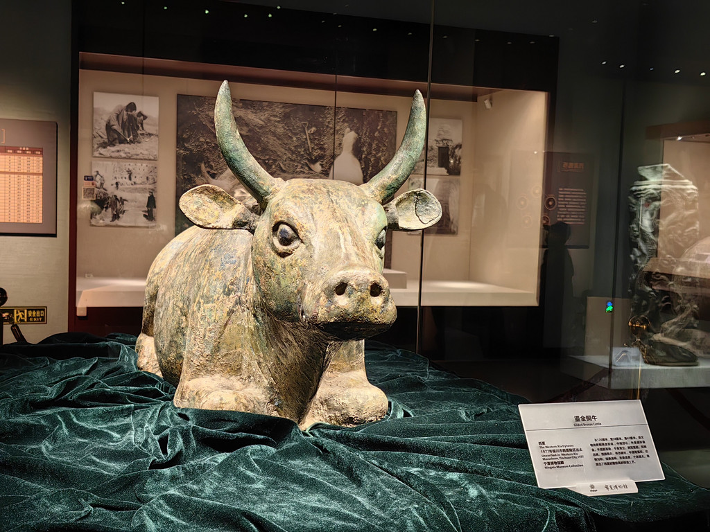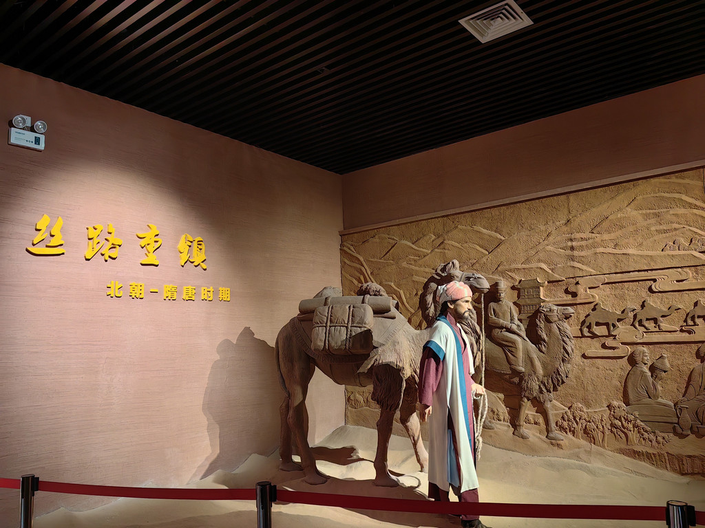 “宁夏通史展厅”是博物馆重点游览的区域,有西汉错金银铜羊、唐代胡旋舞石门扇、西夏鎏金铜牛、人像碑座、凸钉玻璃碗等镇馆之宝。在这里还可以看到“凉州重修护国寺感通塔碑铭”的拓片,拓片上的西夏文比汉字更像方块字。