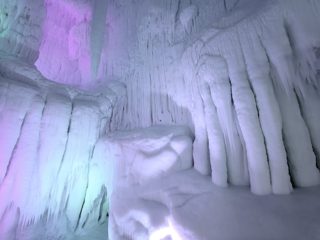 山西省临汾市乡宁县云丘山冰洞群隐藏在深山之中,是世界三大冰洞奇观之一。整个冰洞群由11个洞腔组成,目前已开放5个洞腔。洞穴相互贯通,蜿蜒曲折,最宽处有12米,最高处有15米,洞内四壁结冰,五步一景,冰柱、冰笋、冰钟乳、冰石花分布整个空间,大大小小的冰凌晶莹剔透,在五彩灯光的映照下呈现出梦幻般的景象。据考证,冰洞群产生于第四季冰川期,距今已经有300多万年的历史。洞群成因至今未解,洞内景色美轮美奂,即便是在炎热的夏季,冰洞中依然寒气逼人。