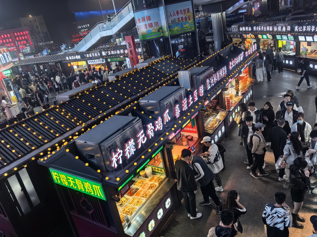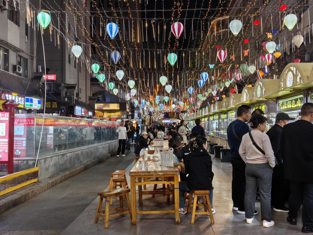 从道观出来,我们暂回酒店休息。傍晚,我们来到延安二道街夜市。