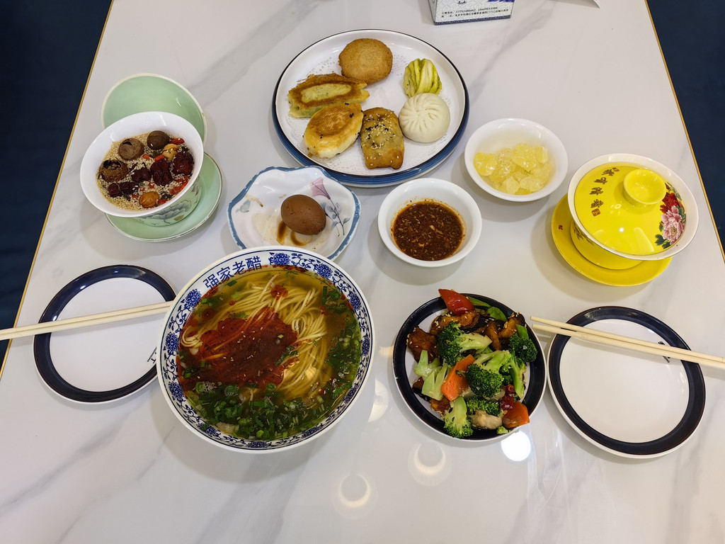 不同于南方的早茶,吴忠的早茶是在牛肉面馆中经营。早上我们先来到酒店附近的一家牛肉面馆,体验吴忠的早茶文化。