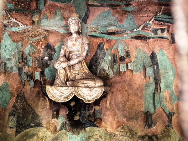 释迦牟尼大佛的两侧,塑着站立的阿难、迦叶二弟子,居左的迦叶显得饱经沧桑,虔心诚挚于佛门净地,居右的阿难显得少年持重,谦恭谨慎。