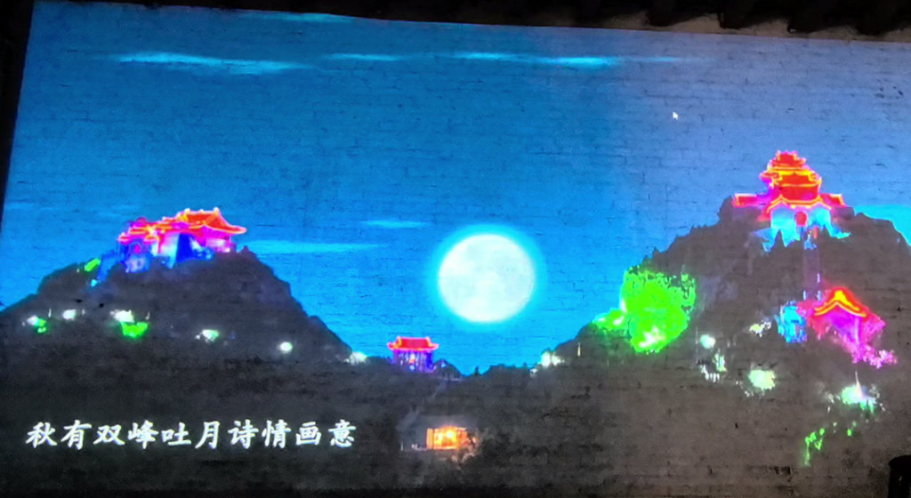 “珏山吐月”景色只有在中秋之夜才能看到,因此从博物馆的视频中截取了一幅“珏山吐月”的画面。从青莲寺遥望的珏山,中秋的明月从两峰之间升起。