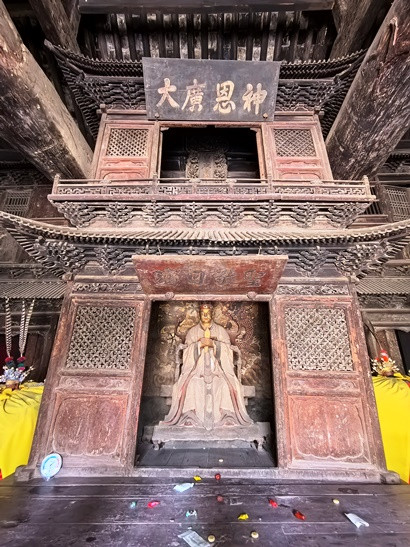 二仙庙正殿内木雕“天寓壁藏”,也称为“天宫楼阁拱桥壁藏”,是不可多得的艺术珍品。
