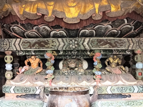 佛祖端坐在青莲座上,青莲座下负重青莲座的力士和瑞兽。关于青莲寺寺名来历的另一种说法是,因佛祖释迦摩尼坐在青莲座上,故名“青莲寺”。