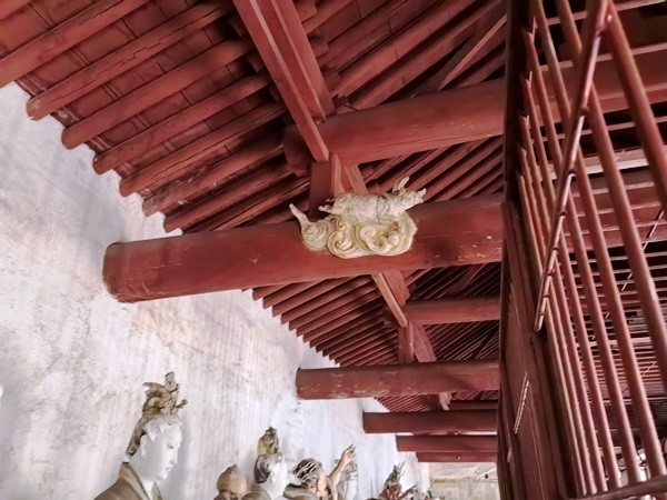 大雄宝殿也称为观音阁,大殿里的佛像是观音,观音右侧好像是高僧,左侧好像是罗汉。观音阁里的泥塑好像是明代的作品。