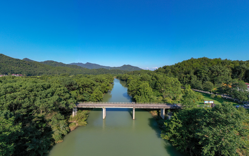 一座石桥将两座林海相连,桥下是一汪平静如止的河面,宛若一颗光滑透亮的碧翡,镶嵌在森林之中,美得不掺杂一丝杂质。沿着石桥缓缓踱步,两旁的栏杆早已在风雨的摧残下,不复当年模样,那些斑驳褪色的痕迹让人难以忽视,石桥也因此变得“德高望重”起来,它就像是一位岁月老人,静静守护着这一方天地,虽不曾惊艳了时光,但却守住了一代人的靖安记忆。