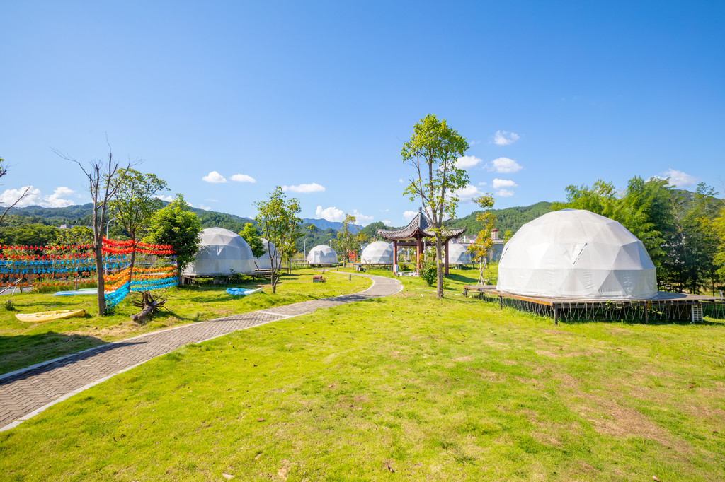 最让人惊喜的是营地的帐篷,宛若一座座“棱角分明”的蒙古包,亦或是一颗颗胖乎乎的包子,憨态可掬,让人忍俊不禁,相比于其他华丽纷繁的酒店,我更钟情于这种原汁原味的住宿体验,以草地为床,以星空为被,伴随着野花的香馥和虫鸣的欢快,享受一场天赐的美梦。