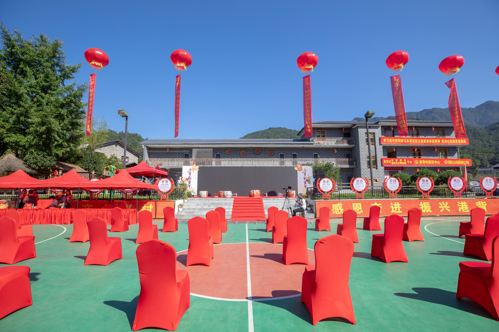 村口设有一座不大不小的广场,广场上摆满了红椅,硕大的显示屏赫然而立,仿佛在迎接一场别开生面的活动。由于时间关系,没能去儒林第一探究竟,据说那里讲述了港背村的红军文化、知青岁月和村庄历史等,丰富多彩,十分值得一游。