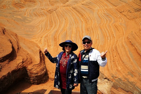 下午游览了靖边波浪谷。我们有11个人,花了近3个小时,走完了全部景点。在火焰丹霞区,我与夫人终于了却了在美国没有游览波浪谷的遗憾。