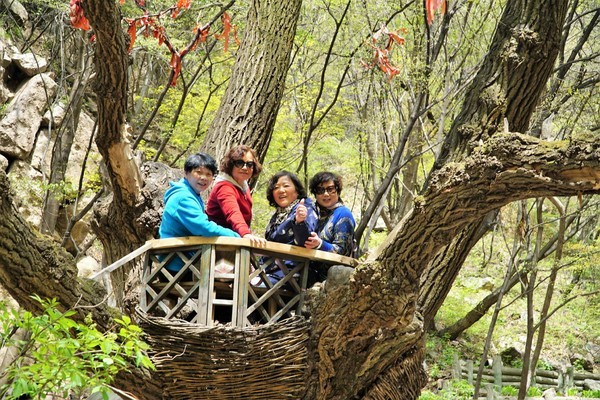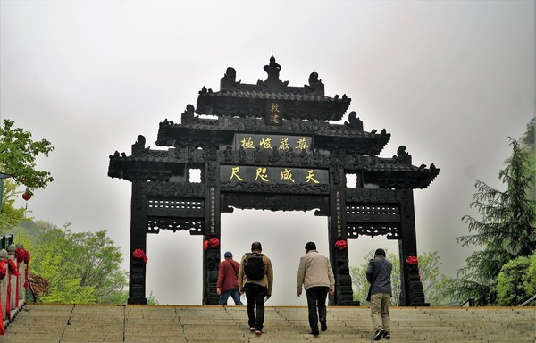 今天,我们是乘索道上西峰,当我们爬上西峰山顶时,下雨了。本来就云挡雾遮的群山,消失在大家的视线中。以摄影为目标的我,只能无奈地回到集合地点——西峰索道口。团里77岁、74岁的两位老先生与四位巾帼英雄,直插南峰!好样的。